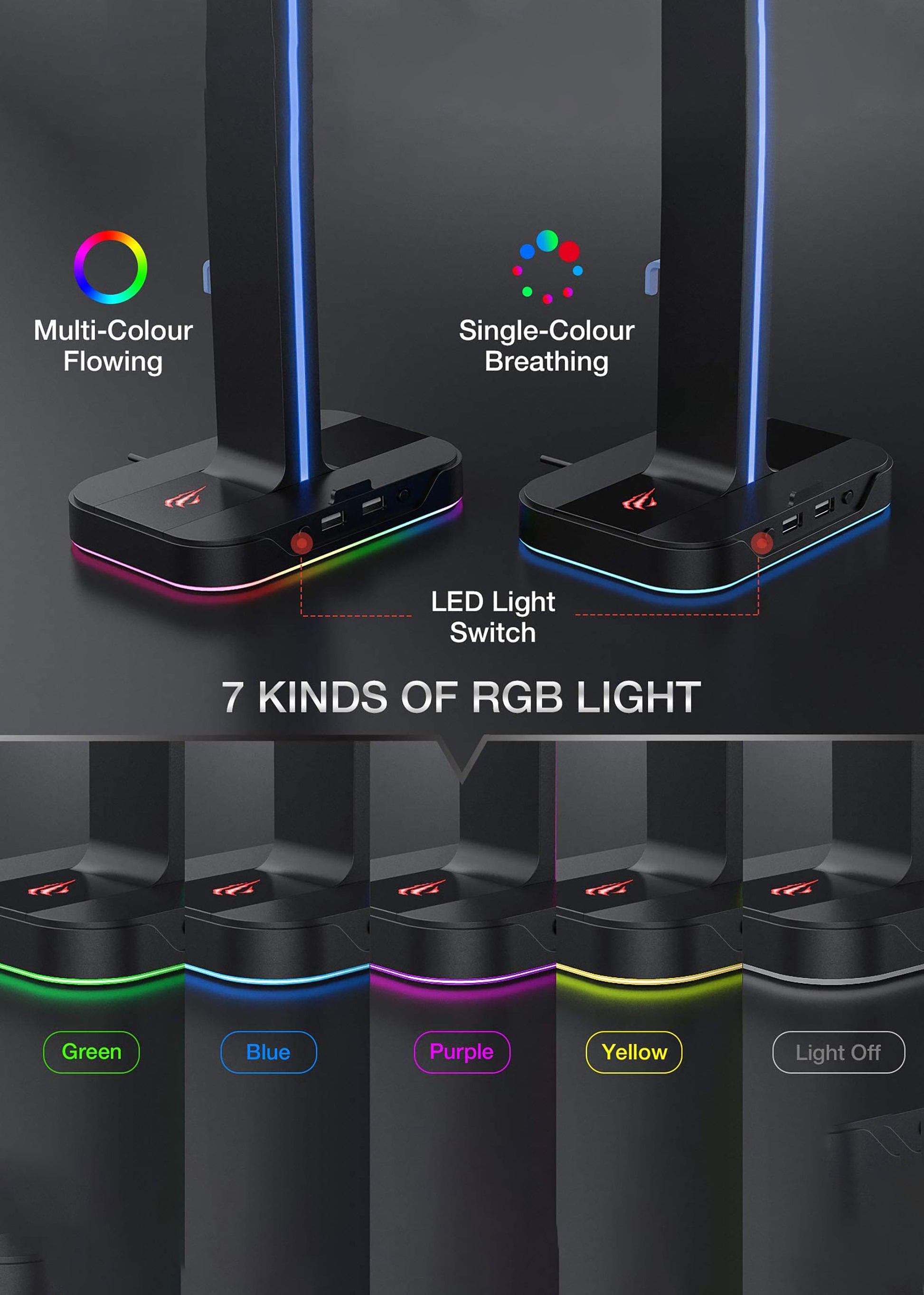 Il supporto per cuffie gaming RGB Havit è progettato per mantenere ordinate e accessibili le tue cuffie durante le sessioni di gioco. La struttura robusta garantisce stabilità, mentre l’illuminazione RGB personalizzabile aggiunge un tocco di stile al tuo setup. Un accessorio essenziale per chi cerca funzionalità e design professionale in un unico prodotto.