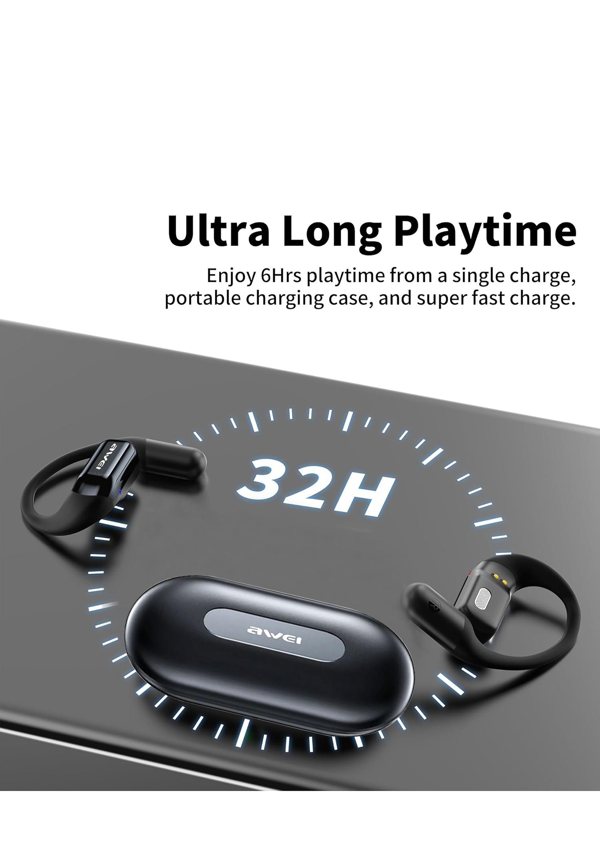 Awei 蓝牙耳机采用空气传导技术。内置充电盒,播放时间长达 35 小时。非常适合热爱无线自由聆听的人士。