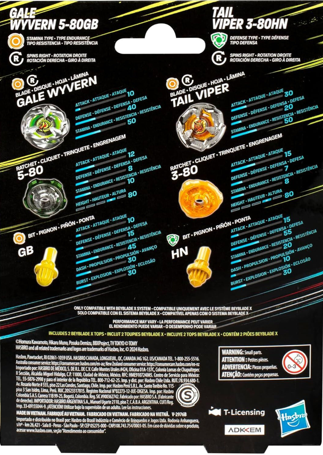 Ottimizza i tuoi combattimenti con il Bayblade X Dual Pack f9586 di Hasbro. Questo set autentico include due Beyblade ad alte prestazioni, progettati per il gioco competitivo, che consentono una personalizzazione strategica e partite intense. Perfetto per gli appassionati che desiderano affinare le proprie abilità e dominare l'arena con precisione e potenza.