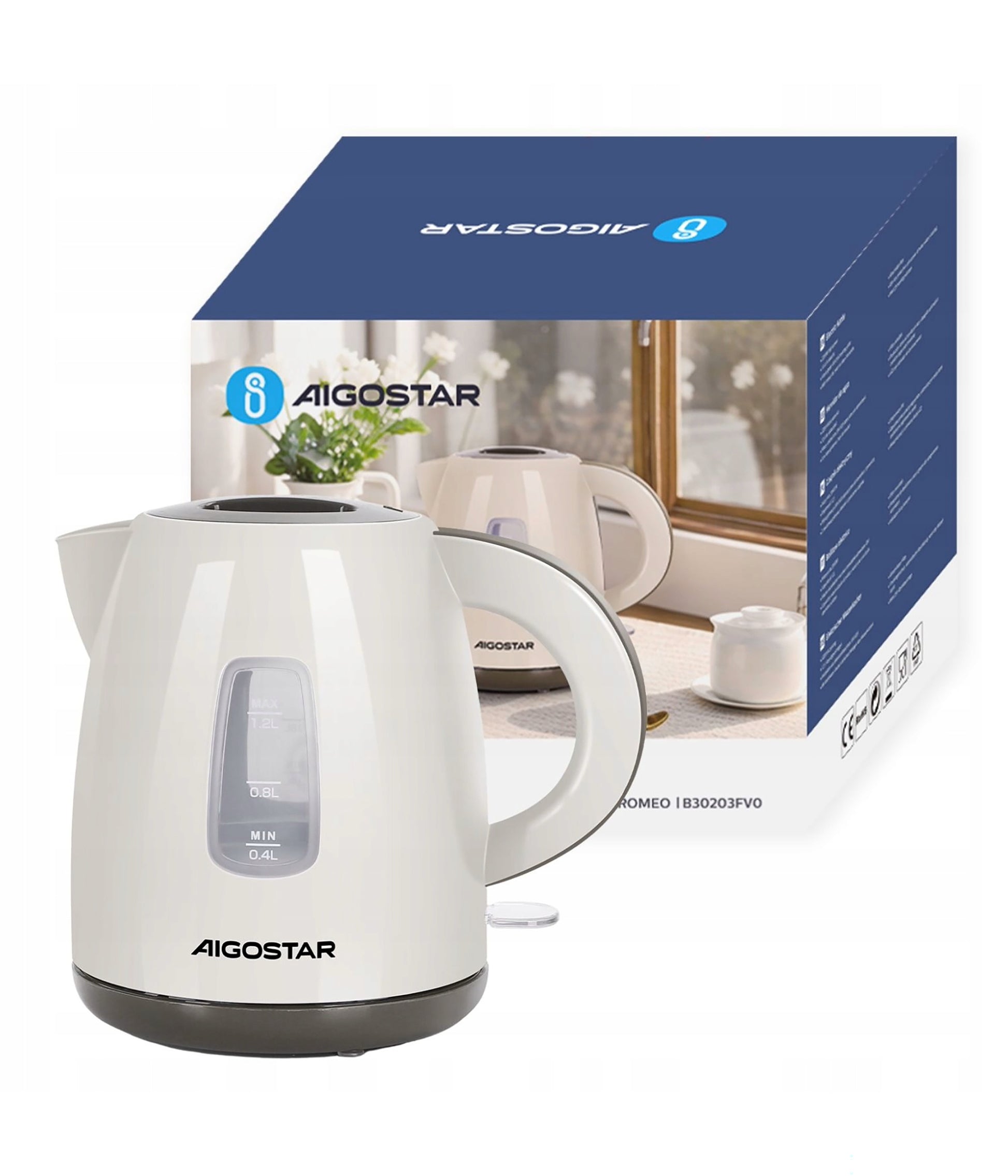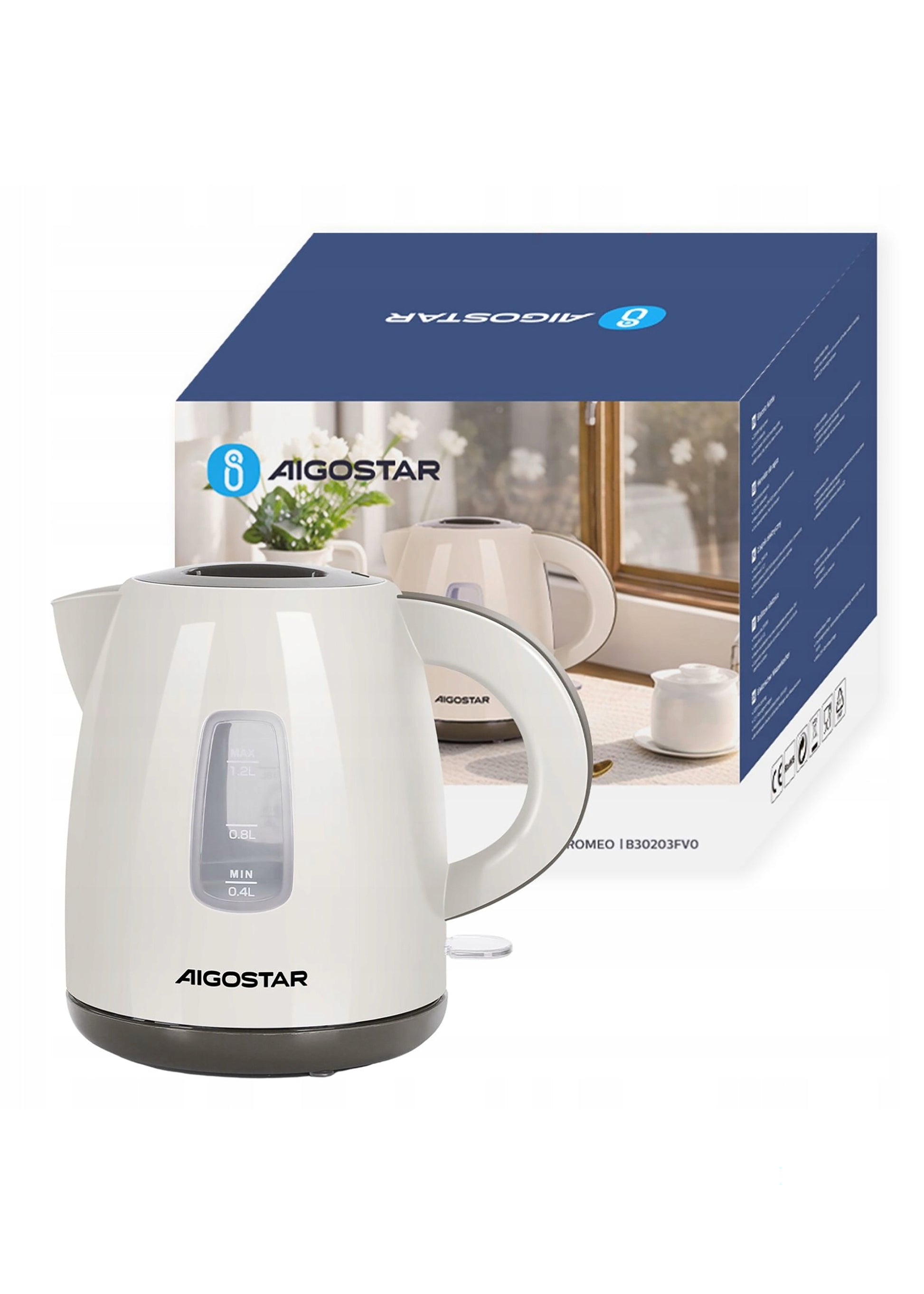 白色塑料电热水壶 - 1850-2200W - 1.2升容量
