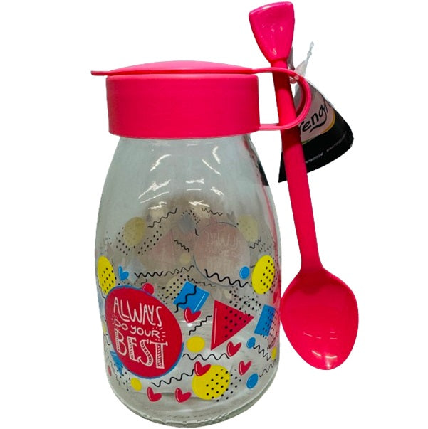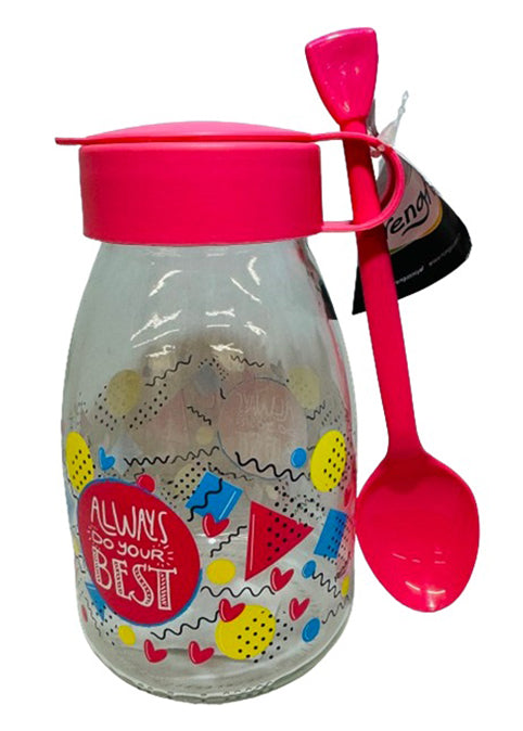 带勺子的装饰玻璃瓶 - 紫红色