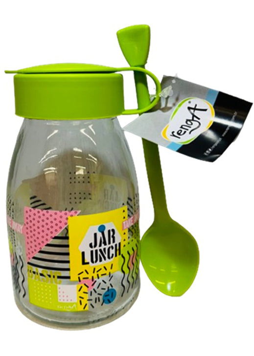 带勺子的装饰玻璃瓶 - 绿色