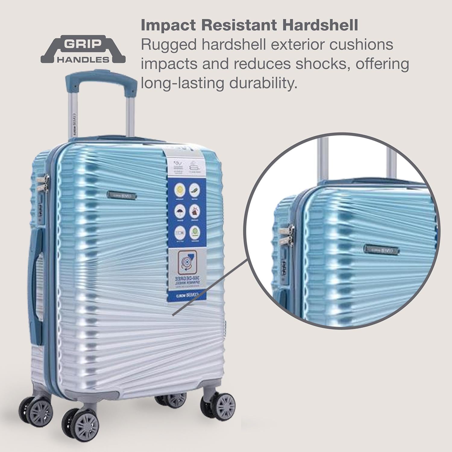 COVERI WORLD 坚固的聚碳酸酯旅行箱,配有硬壳和 8 个旋转轮、铝制手柄、低调的蓝色、大格纹图案 28 英寸、20 英寸、24 英寸