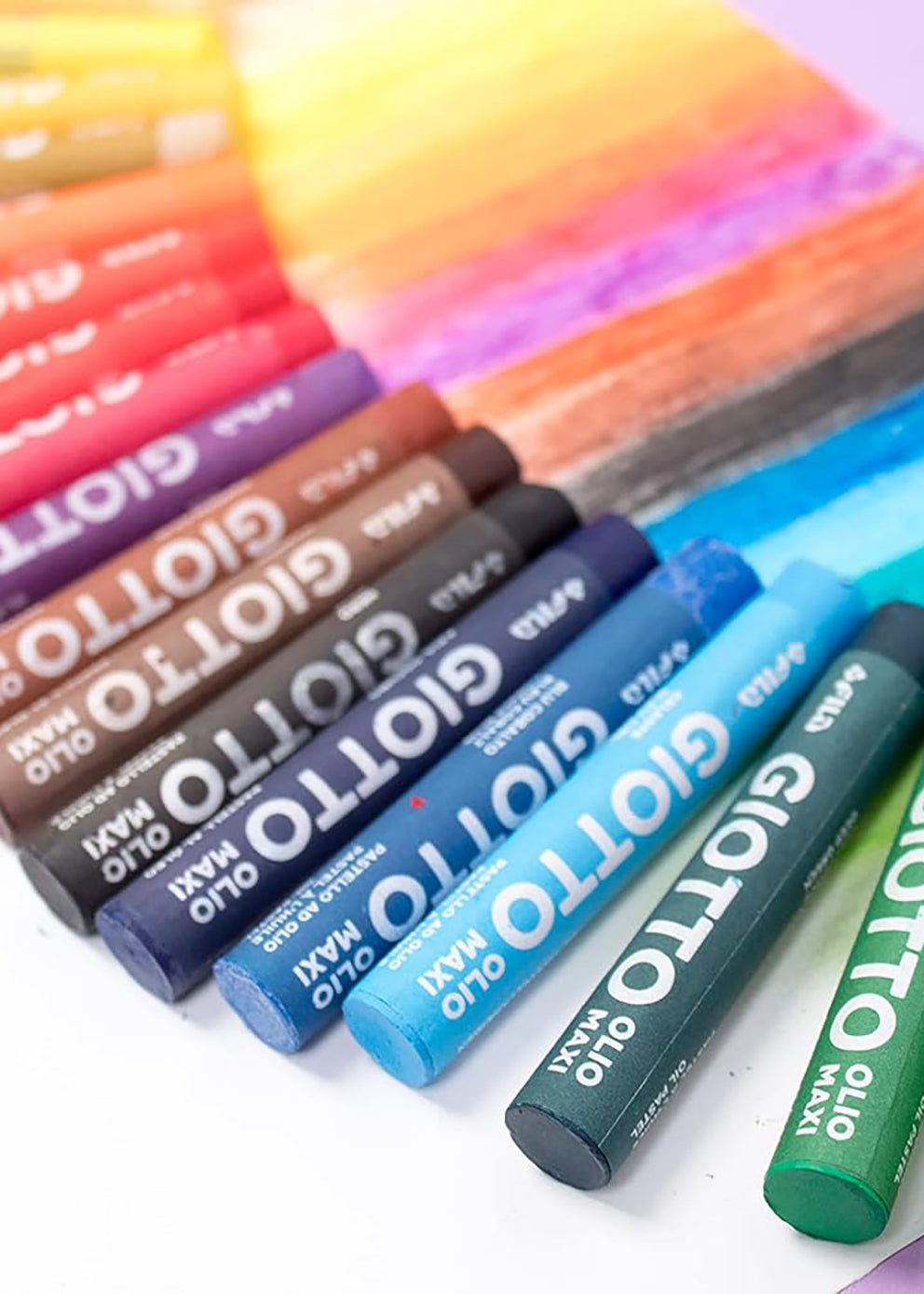 乔托油画棒一盒12色,品质卓越,色彩绚丽。柔滑的质地确保涂抹均匀,易于晕染,是专业和业余艺术家的理想之选。浓郁的色彩能够牢牢附着在各种表面,持久耐用,色彩鲜艳夺目。这些油画棒非常适合混合媒介和精细绘画,是精准表达创造力的多功能工具。