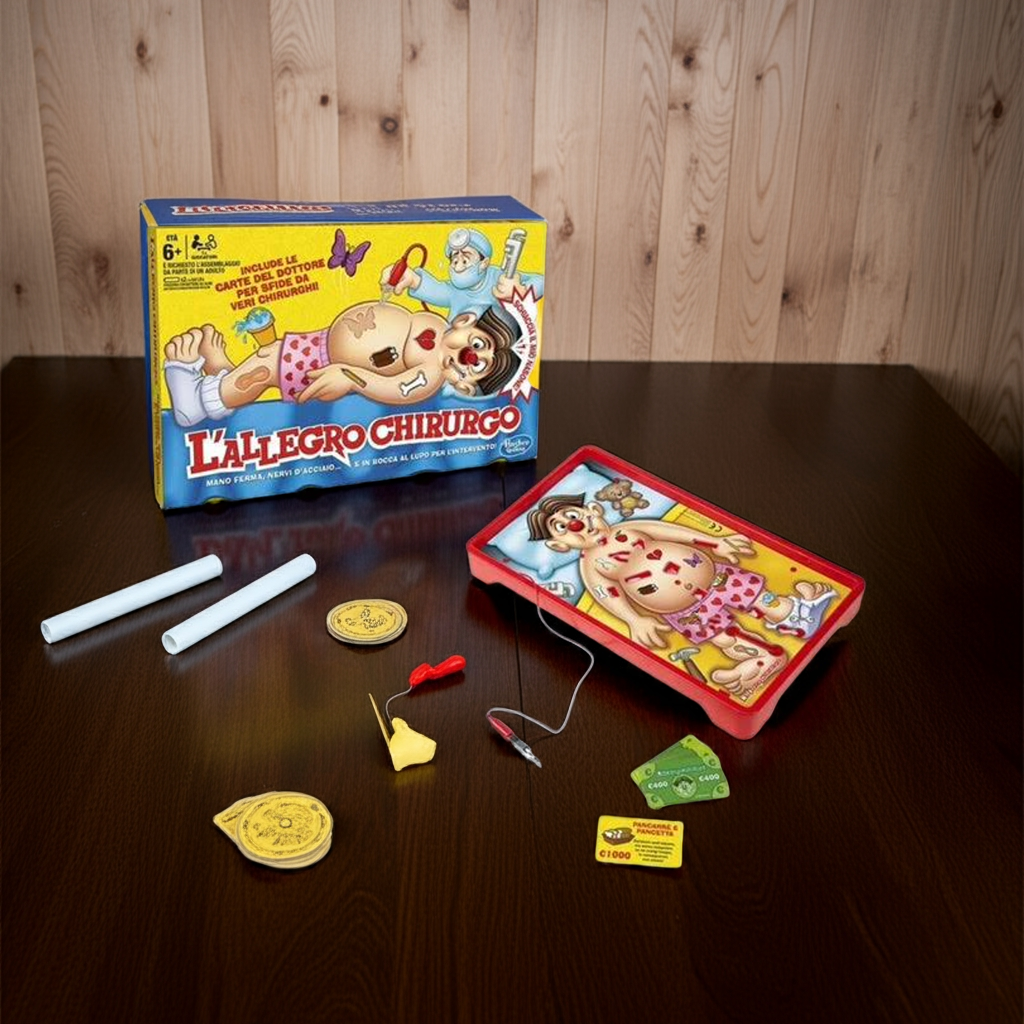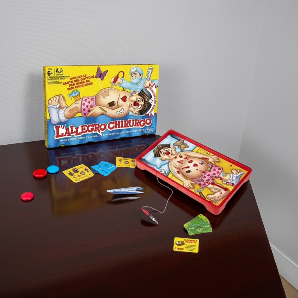 快乐外科医生是一款经典的棋盘游戏,兼具手部灵活性和趣味性,挑战玩家在不敲响铃铛的情况下准确地取出“器官”。这款游戏旨在培养灵活性和专注力,为所有年龄段的玩家提供引人入胜的体验。由于其坚固的结构和优质的材料,保证玩家可以安全愉快地玩上几个小时。