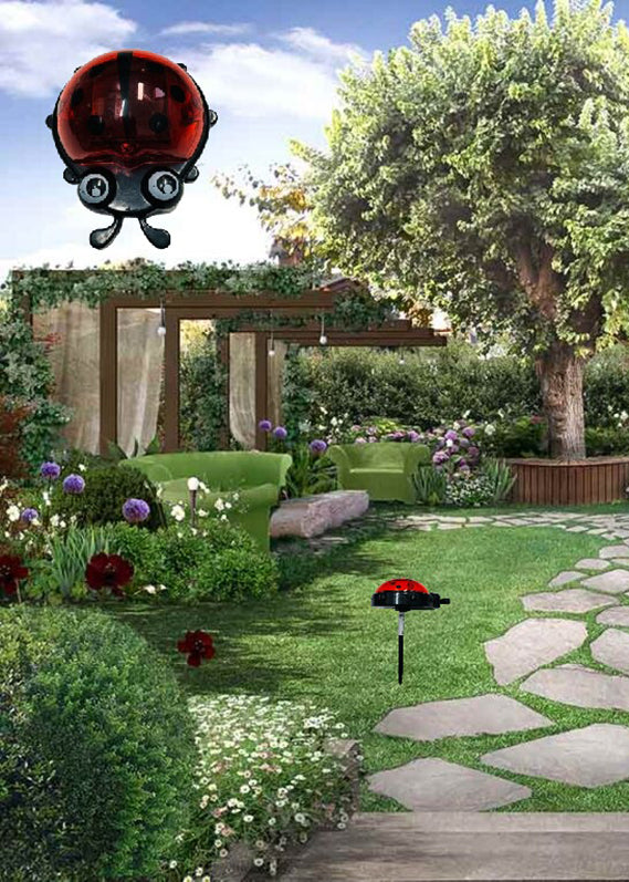 太阳能灯形状像瓢虫或猫头鹰,它利用太阳充电并在晚上自动开启。