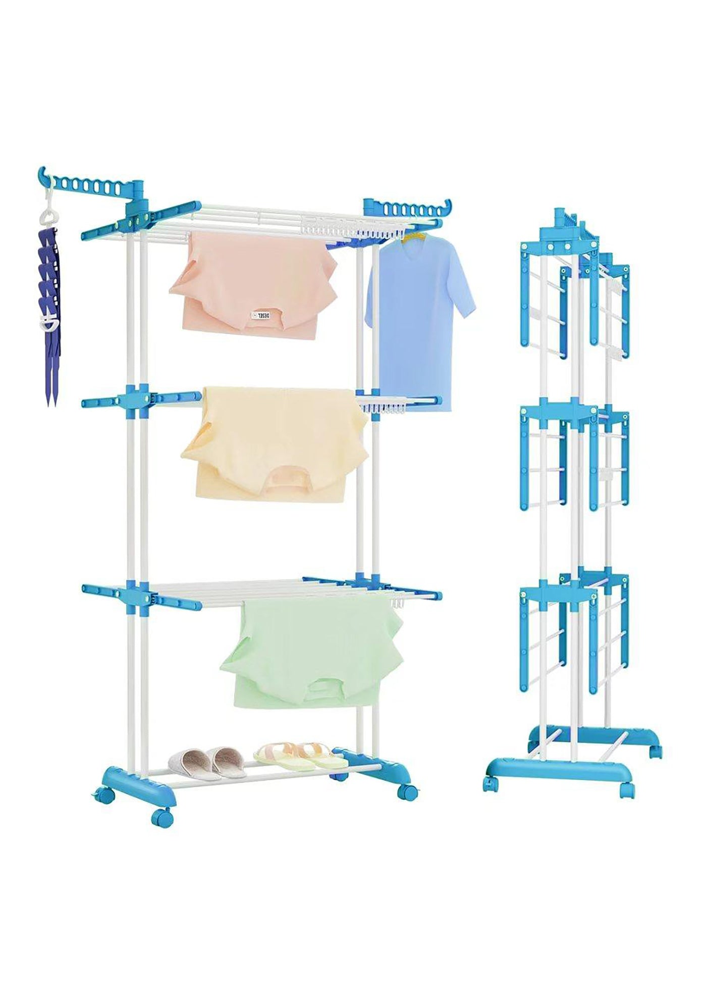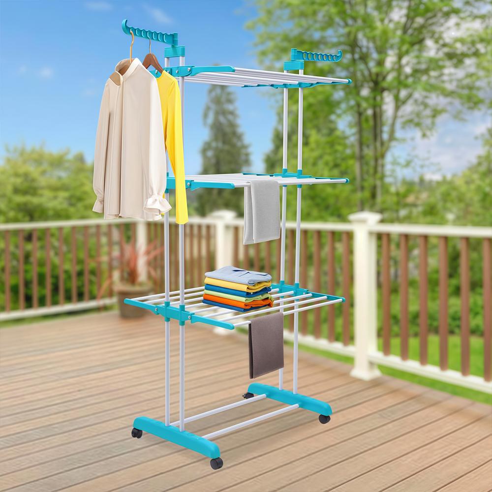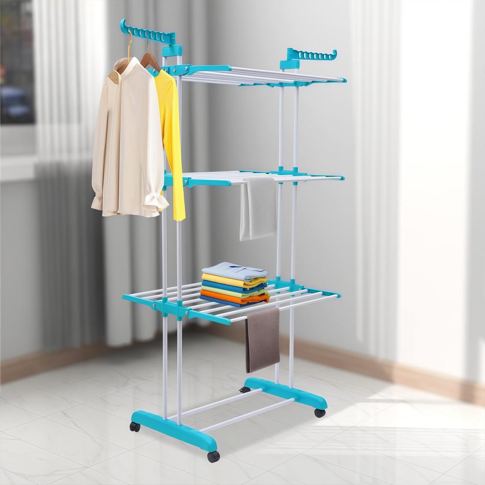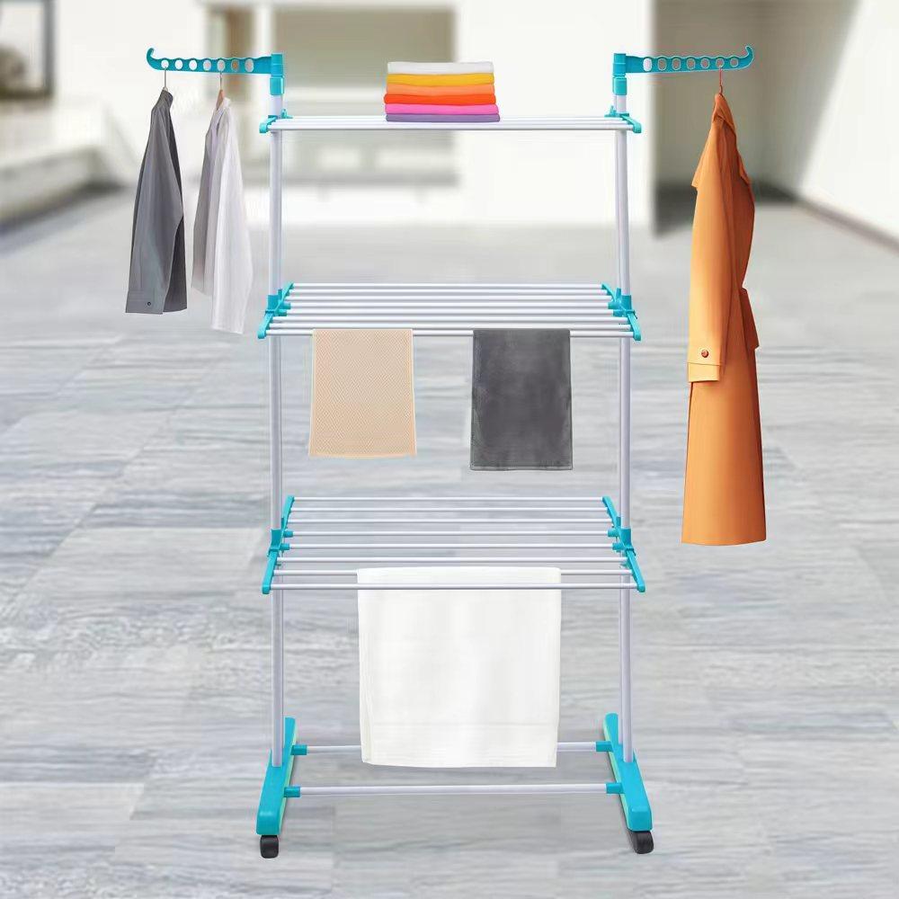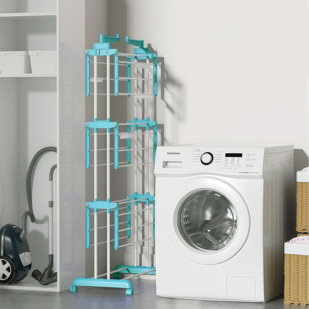 尺寸和空间:这款晾衣架设计精巧,占用空间极小。尺寸高 170 厘米,宽 50 厘米,长 76 厘米。非常适合空间有限的家庭或企业。