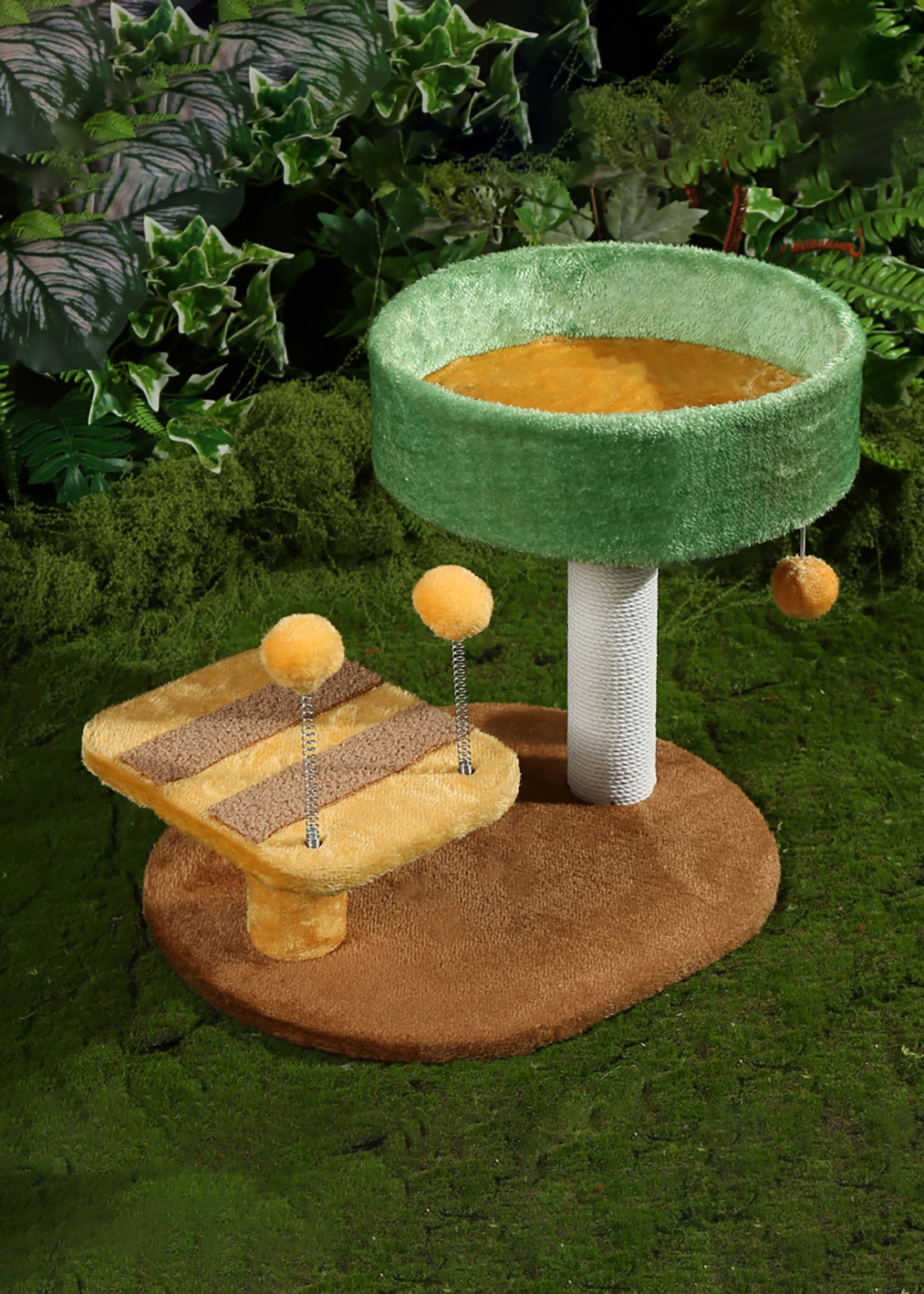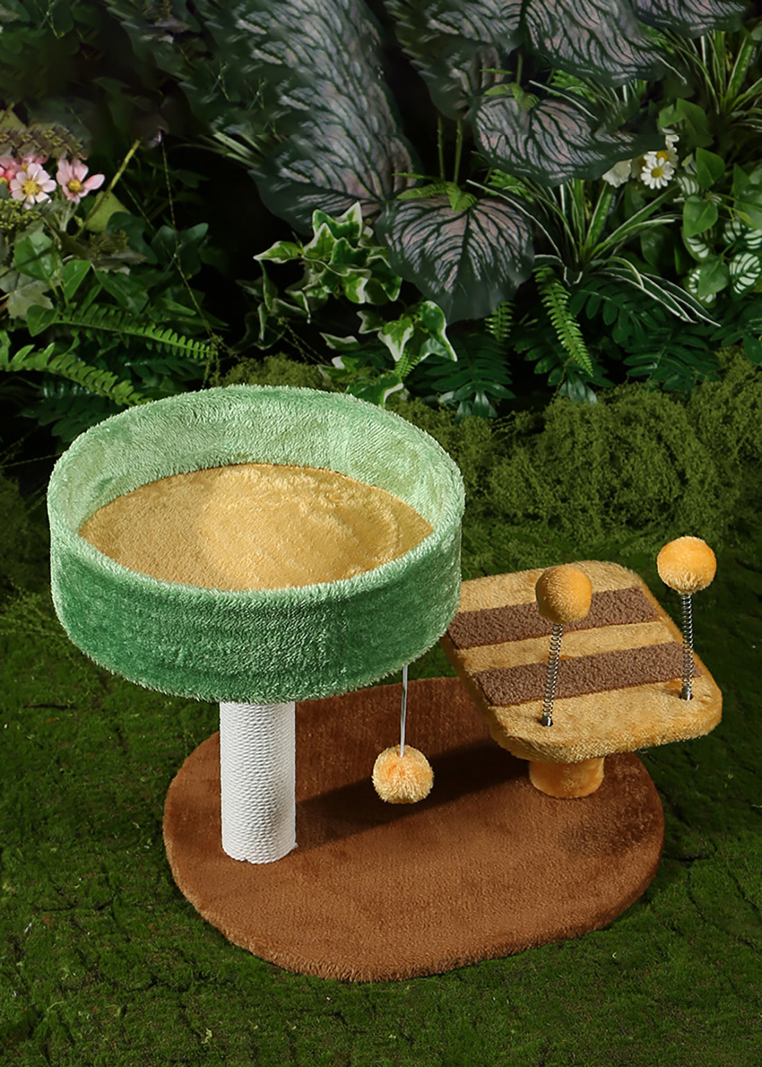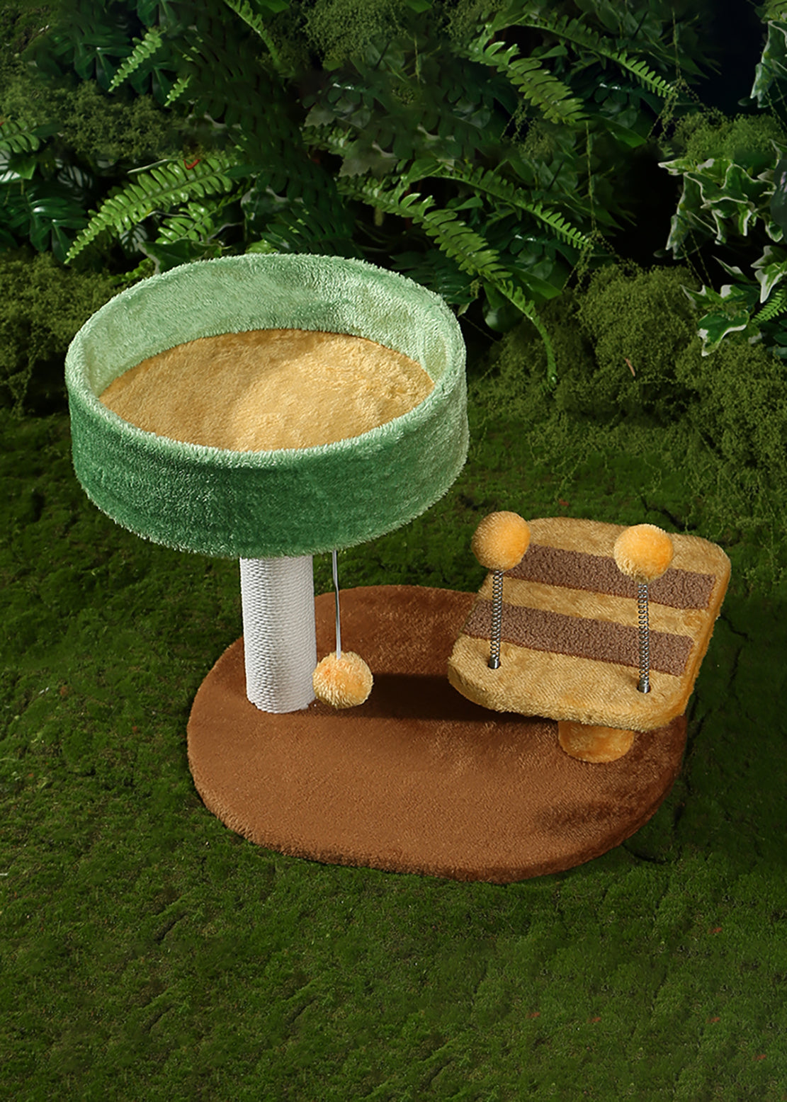 Questo tiragraffi dal design ispirato alla natura è perfetto per far riposare, graffiare e giocare i gatti di taglia piccola.