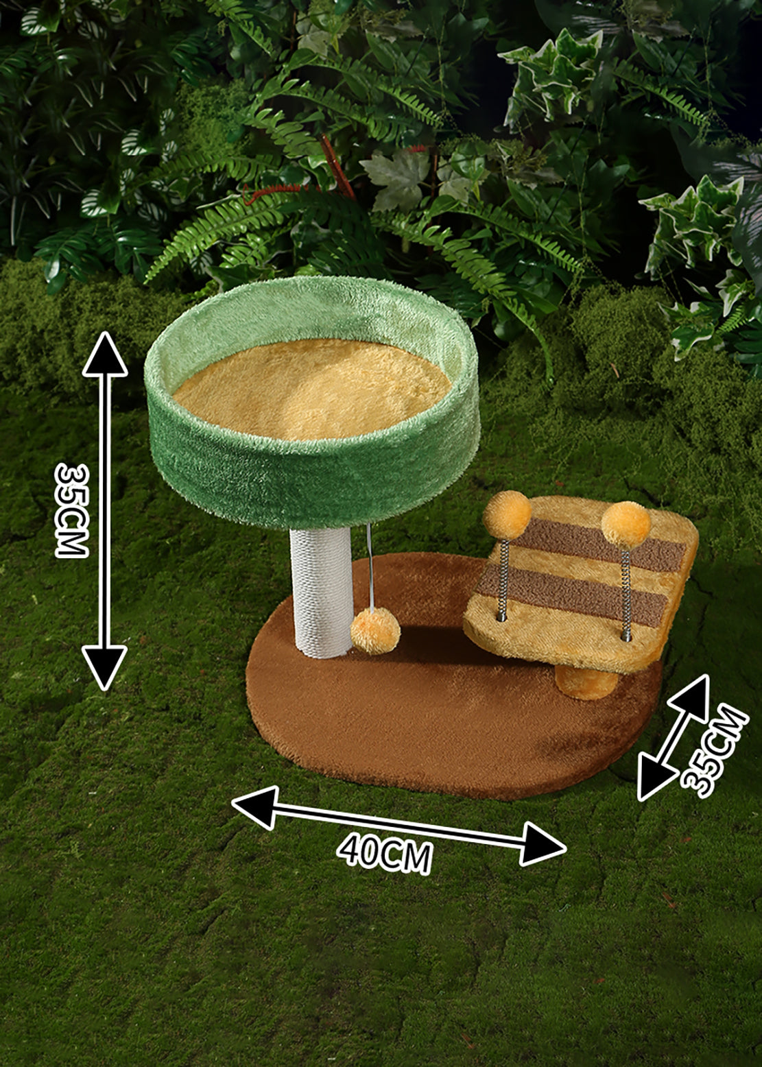 Tiragraffi per Gatti con Cuccia Morbida e Giochi a Molla – Design Naturale Compatto (35×40×35 cm)