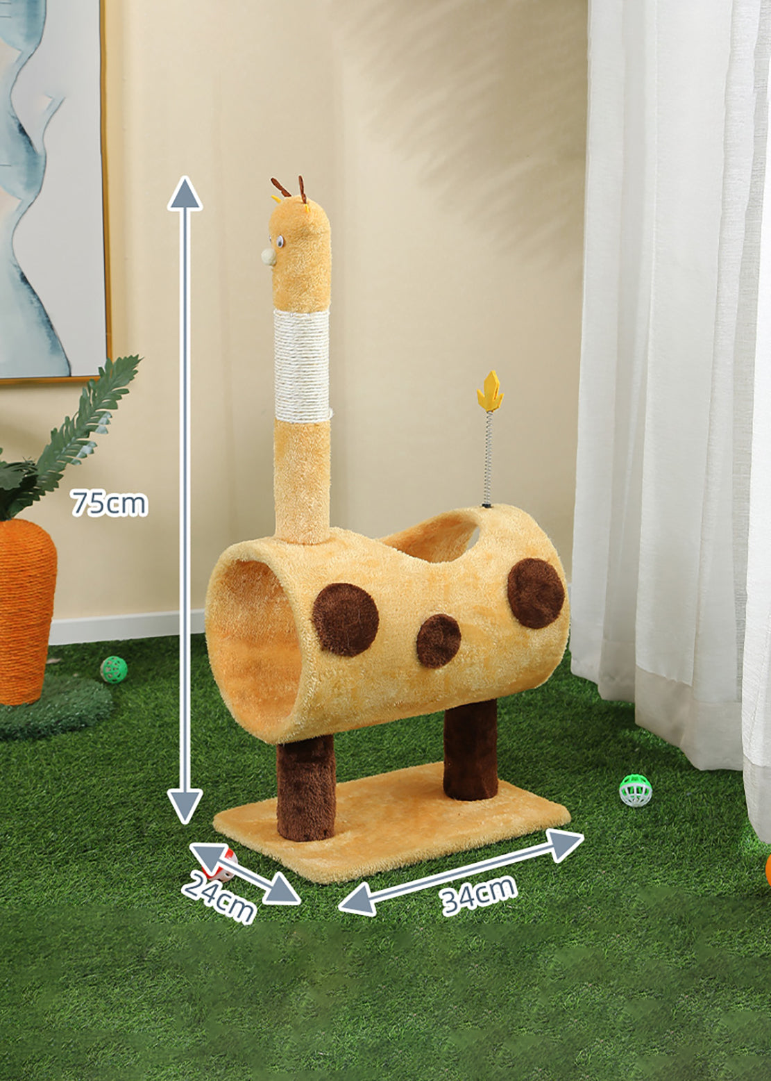 La superficie della giraffa è rivestita in sisal naturale, materiale amato dai gatti per farsi le unghie in modo sicuro, evitando che rovinino mobili o tappeti. La base ampia assicura stabilità e sicurezza durante l’utilizzo, mentre la testa e le orecchie della giraffa fungono da simpatici dettagli decorativi e da punti di appoggio extra per il tuo felino. L’altezza del tiragraffi è pensata per soddisfare l’istinto naturale del gatto di graffiare in verticale, mantenendo le unghie sane e forti.