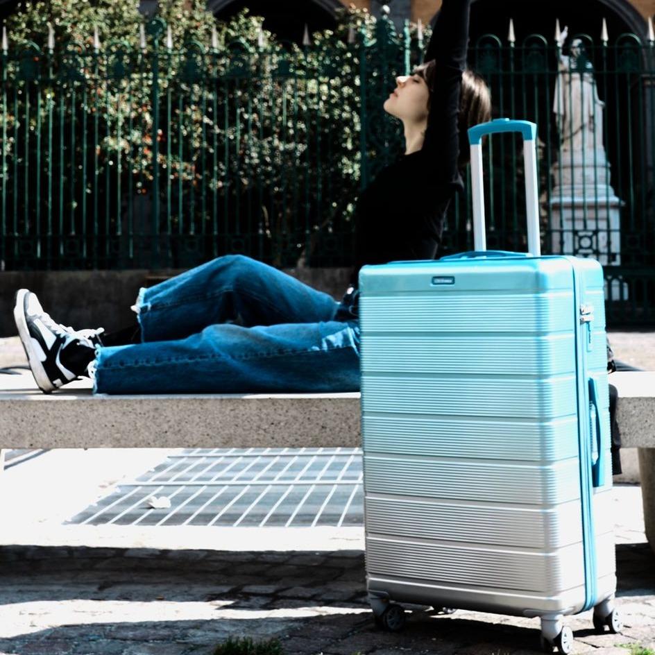 这款行李箱内衬尼龙,外层采用优质面料*,确保坚固耐用。浅蓝色的设计为您的行李箱增添一抹清新与创意。