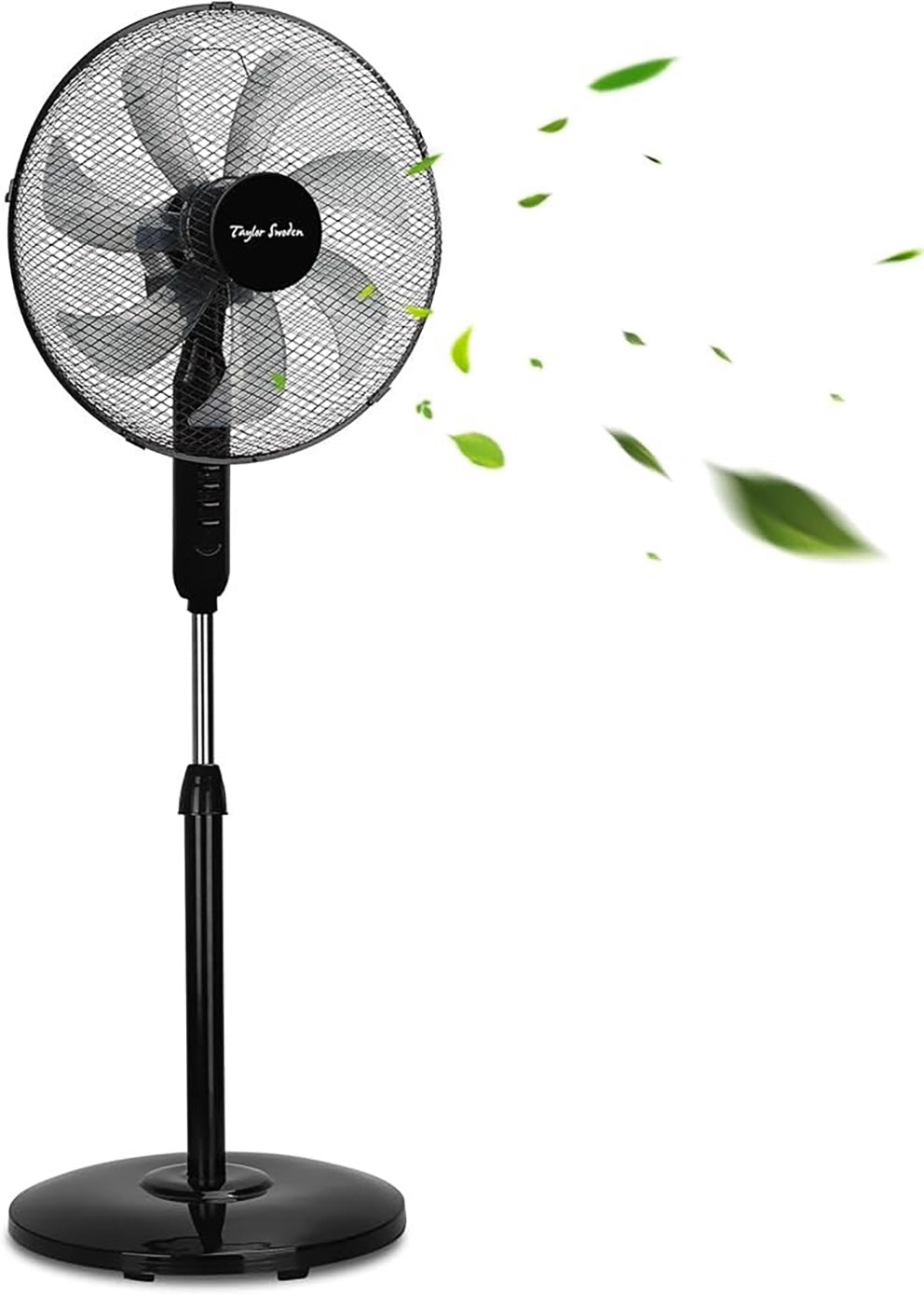 这款 60W 落地扇专为居家或办公环境提供高效通风而设计。其均衡的功率确保恒定且可调节的气流,是保持最佳热舒适度的理想之选。底座结构易于定位和稳定,功能性设计则可轻松适应不同的空间,高效安静地改善空气循环。